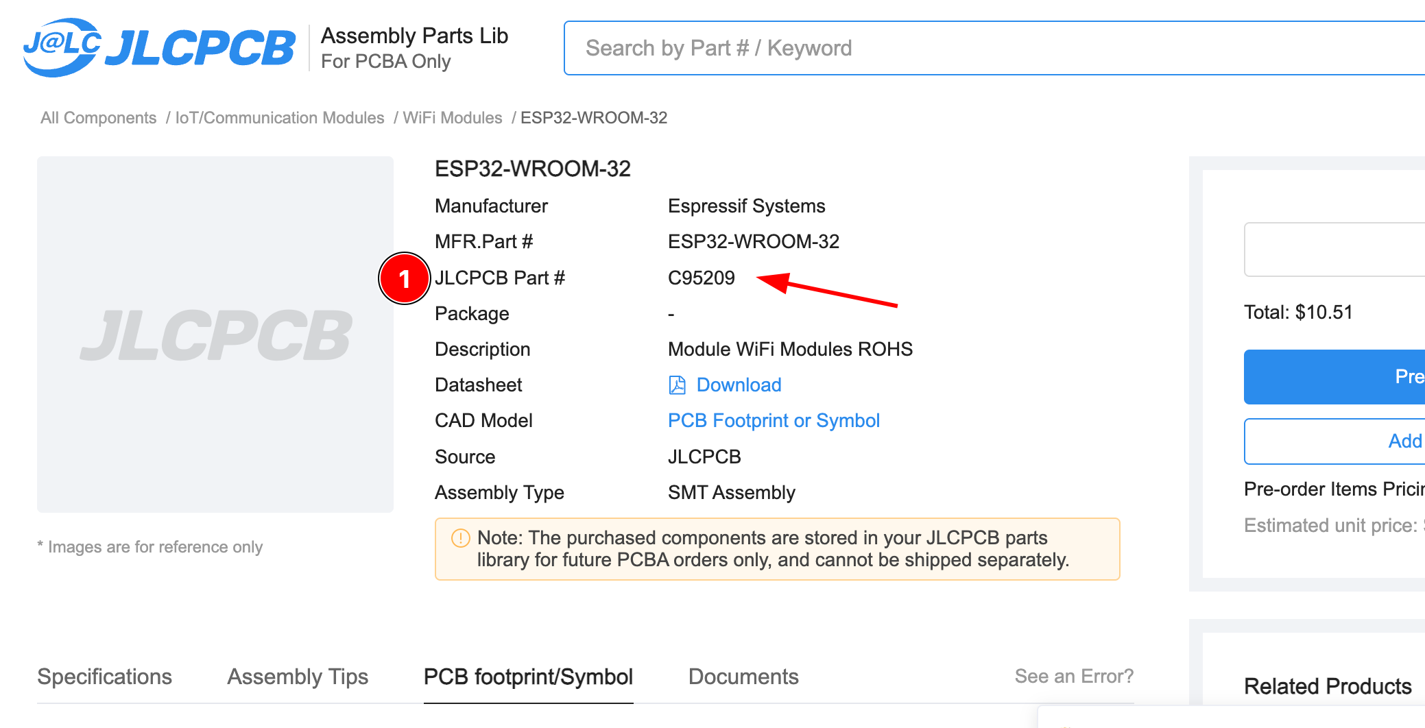You can find the JLCPCB Part Number on JLCPCB's website