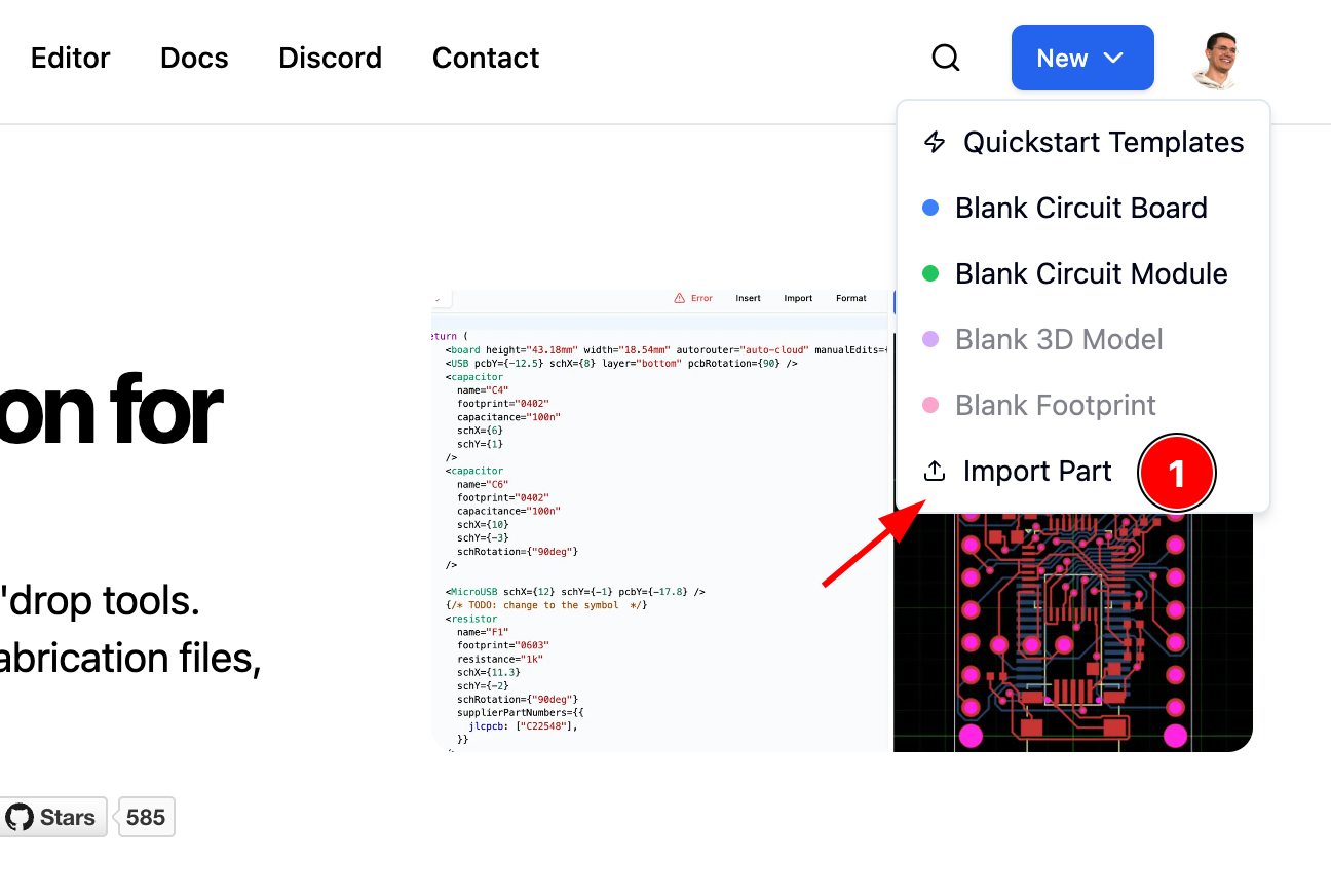 Step 1: Go to tscircuit.com and press the "new" button
